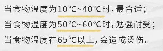 图源:国家应急广播如果孩子误吞滚烫的食物,可以给孩子适当含服凉开水或牛奶降温,但不要强迫吞咽,然后送医治疗。如果不小心已被烫伤,记住这些处理方法:1.减少刺激 :停止食用任何可能进一步刺激食管的过烫食物或饮品,可以喝一些凉开水,但要避免冰水或冰块,因为过冷的食物也可能刺激已受伤的食管。2.使用药物 :如果烫伤导致明显的炎症或疼痛,可以在医生的建议下服用一些消炎药或抗酸药物,帮助减少食管的刺激和炎症反应,促进愈合。3.及时就医 :如果进食后出现胸骨后疼痛、吞咽困难或呕血等症状,应立即停止进食并及时就医。切勿自行服用止痛药或误以为是一般胃食管反流导致的轻症,从而延误治疗时机。这些食物更容易烫伤食管,无论大人还是小孩都要注意:中心比较烫的固体食物 :灌汤包、红豆派、糖包子、汤圆、豆腐、炸丸子、烤红薯等。各种热饮 :热汤、热茶、热豆浆、热咖啡、热牛奶等。其他 :火锅、麻辣烫、砂锅粥、煲仔饭、石锅饭、热汤面等。防止食物烫伤,要记住这四个“度”:1、温度:10℃-40℃食管黏膜相对柔嫩,适宜的食物温度应在10℃-40℃,而人们通常能耐受的最高食物温度约为50℃-60℃,一旦超过这个温度范围,食管黏膜就容易被烫伤。